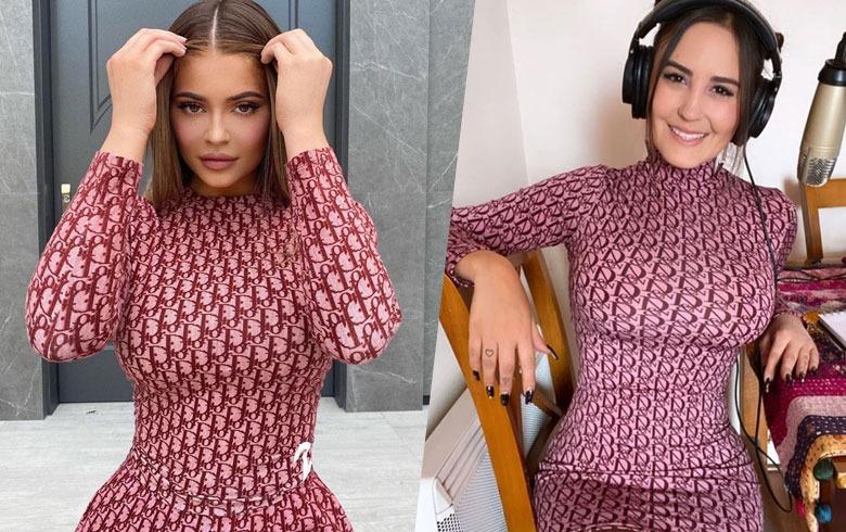 Kylie lleva unos días mostrándose en este estampado, en un ceñido enterito, mientras que en el caso de Mari se trata de un vestido ajustado cuello alto.