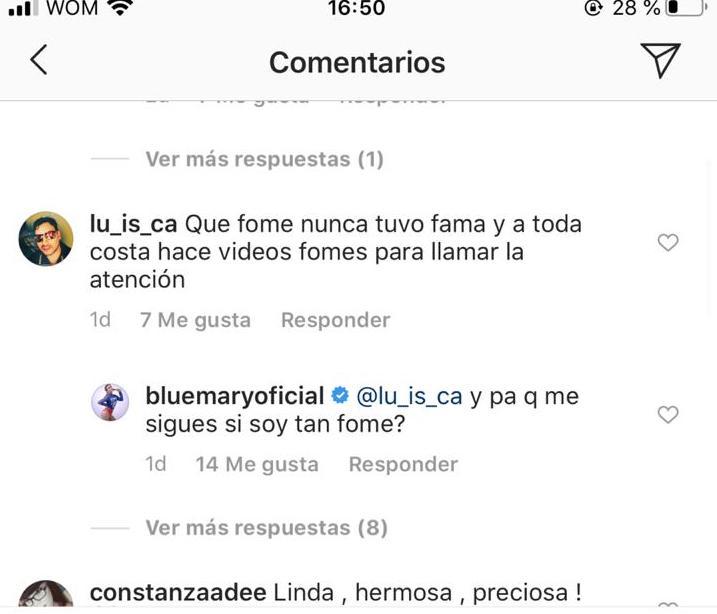 Sin embargo un usuario reaccionó y no de la mejor forma al llamado de Mari tratándola de "fome". "Que fome nunca tuvo fama y a toda costa hace videos fomes para llamar la atención", fue el comentario que hizo a Mari reaccionar.