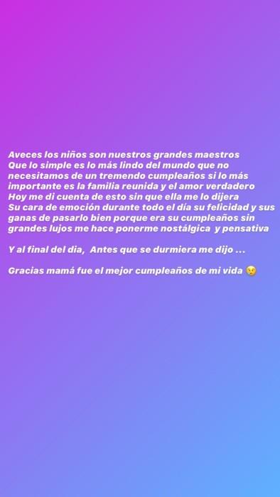 La bailarina publicó lo que su hija le dijo luego de que terminara la íntima reunión en familia para festejar.