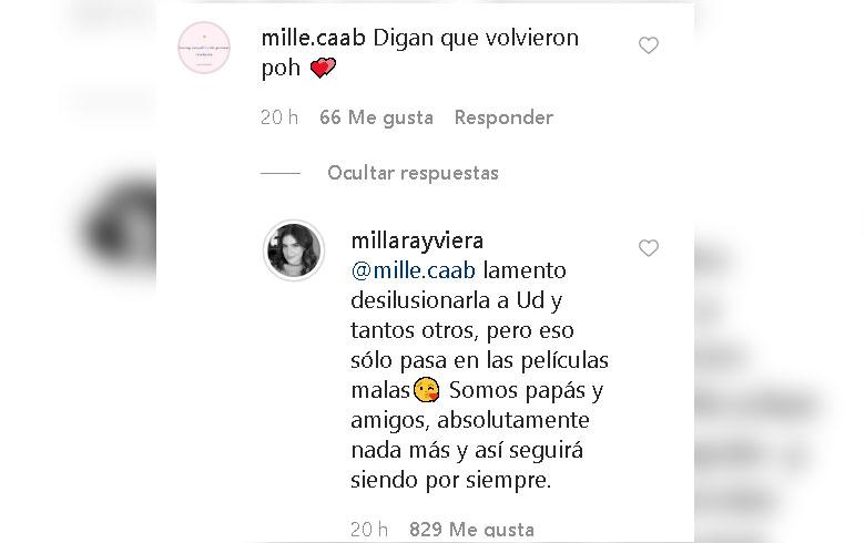 Fue así como una usuaria le insinúo a la actriz que ya era momento de decir la verdad, a lo que ella contestó: “Lamento desilusionarla a usted y a tantos pero eso solo pasa en las películas malas. Somos papás y amigos, absolutamente nada más y así seguirá siendo por siempre”.