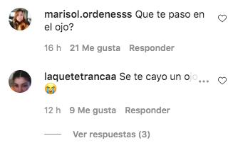 "¿Qué le pasó a tu ojo?", "Más filtro porfa, te ví el otro día y no eres así", "El ojo se te ve súper raro", escribieron los seguidores de la ex "Acapulco Shore".