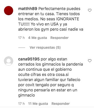 "Perfectamente puedes entrenar en tu casa. Tienes todos los medios. No seas IGNORANTE TU!", escribió una de las seguidoras de "Luli".