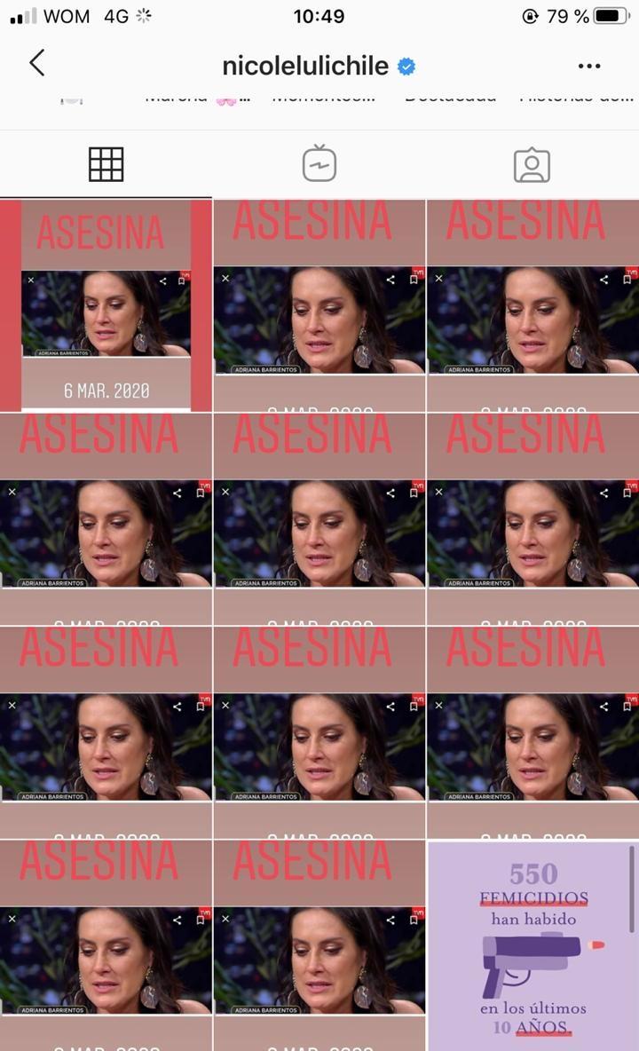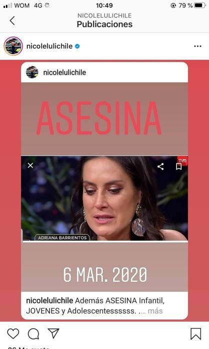 Y este lunes vuelve a causar impacto al subir más de diez veces seguidas una foto de Adriana Barrientos donde la tilda de “asesina infantil”.