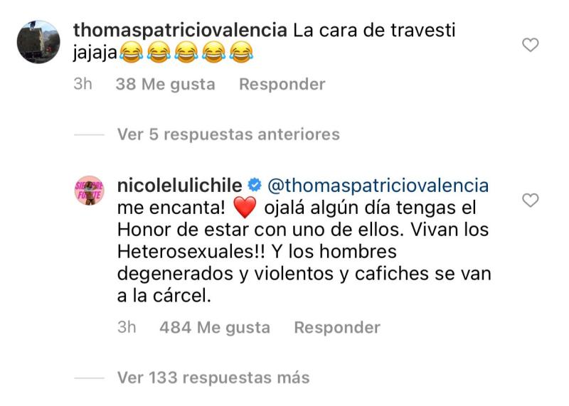 Nicole Moreno sigue dando qué hablar con su actuar en redes sociales, esto porque un usuario la hizo reaccionar al llamarla "travesti" en una de sus últimas publicaciones.