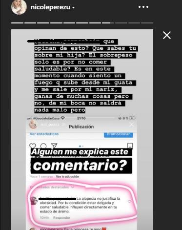 La joven madre leyó el comentario que aloja en la cuenta de Instagram de su hija y de inmediato no dudó en tomarle pantallazo y subirlo a su propio Instagram con el descargo.