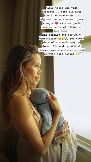 "Baby Santi 22.02.2020", comentó la blogger en su cuenta de Instagram junto a la primera postal de su retoño en sus brazos recibiendo apego.