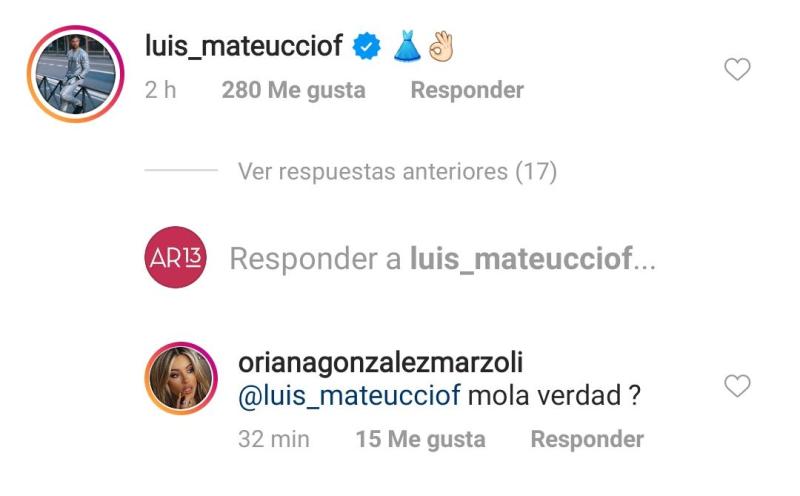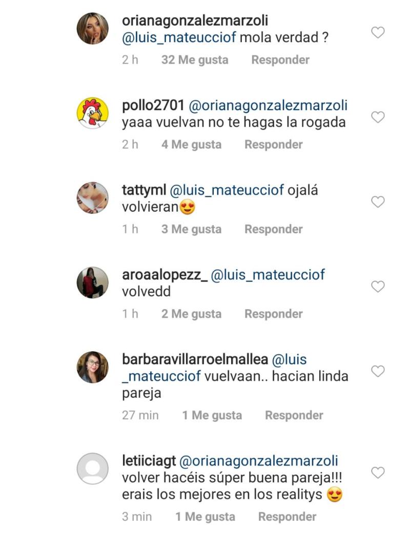 Aunque terminaron hace tiempo, Oriana Marzoli y Luis Mateucci siguen en contacto y en redes sociales suelen comentarse los posteos. Así lo hicieron este jueves, destaando una ola de comentarios de sus fans emocionados.