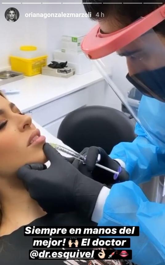 A través de sus historias de Instagram (puedes ver los videos en la parte superior de la nota) mostró su visita a una clínica estética, donde le aplican las inyecciones para mantener los labios carnosos que ahora luce en redes sociales. "Es un producto muy suavecito", le dice el doctor encargado de inyectarle.
