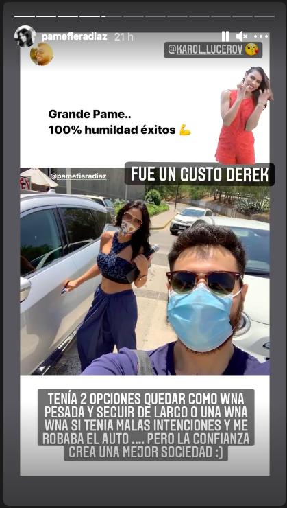 Por medio de stories de su cuenta, Pamela compartió una divertida fotografía junto a un compañero de equipo quien simuló ser un seguidor que le pedía una foto.