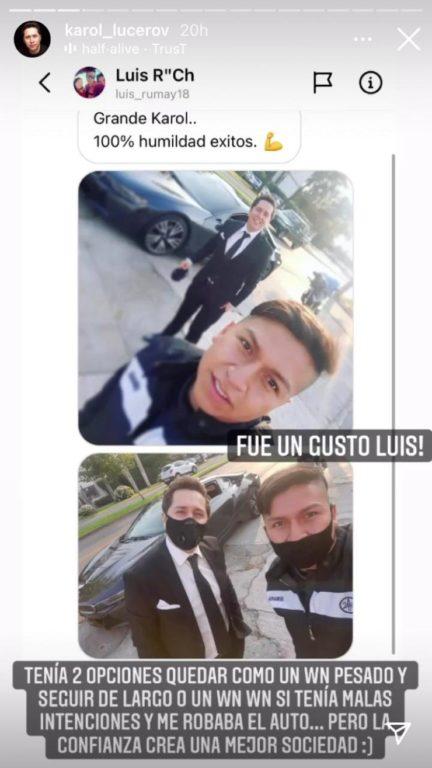 "Tenía 2 opciones. Quedar como un wn pesado y seguir de largo o un wn wn si tenía malas intenciones y me robaba el auto… Pero la confianza crea una mejor sociedad", escribió junto a una fotografía donde posa con uno de sus seguidores.