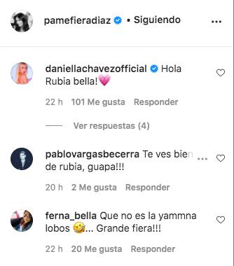 Seguidoras de Pamela aprobaron cómo le queda el rubio y se lo hicieron saber en sus comentarios, entre ellas Daniella Chávez.