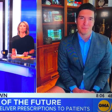 En todo un viral se ha convertido un enlace en vivo del programa Good Morning America en el que un periodista hace su trabajo desde casa, pero sin sus pantalones.