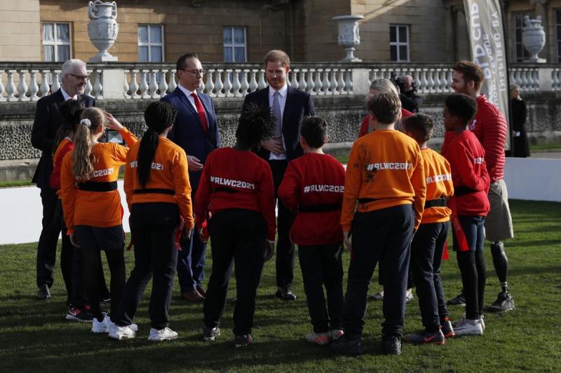 El duque de Sussex encabezó el sorteo de la Copa del Mundo de la Liga de Rugby del 2021.