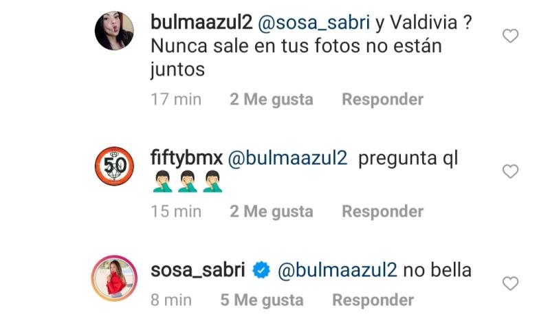 "Y Valdivia? Nunca sale en tus fotos. No están juntos?", preguntó la usuaria. La respuesta de Sabrina impactó a todos ya que reveló que ya no están juntos.