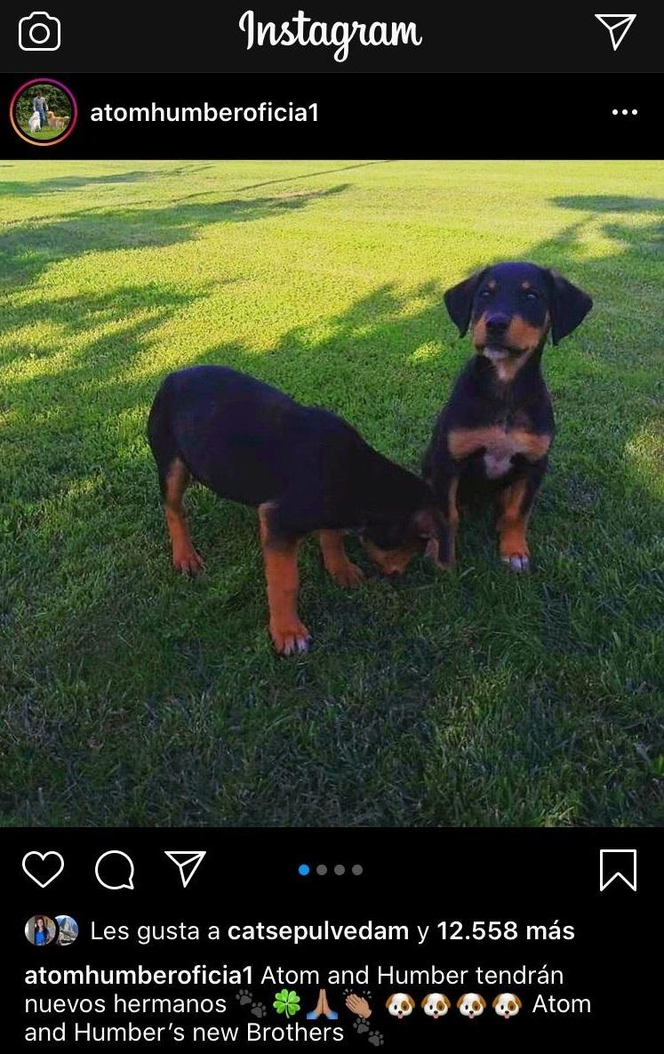 Y ahora vía este mismo medio dio a conocer que se agrandó la familia: adoptó a dos cachorros. "Atom y Humber tendrán nuevos hermanos", escribió en la cuenta oficial de los canes.