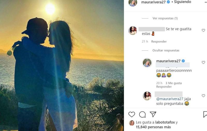 En la imagen, ambos salen abrazados, con el sol del atardecer y el mar de fondo. La publicación fue acompañada de corazones como expresión de amor por Maura.