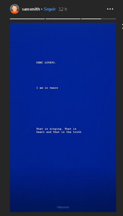 Pero Selena no fue la única en dedicarle palabras a Lovato. Sam Smith también utilizó sus redes sociales para escribirle a la intérprete de “Sorry not Sorry”. “Demi Lovato. Estoy llorando. Eso es cantar y esa es la verdad”, escribió tras la presentación.