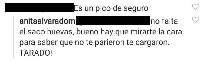 “Es un pic*, de seguro”, escribió el individuo. Y Angie respondió sin filtro: “No falta el saco de hu***. Bueno, hay que mirarte la cara para saber que no te parieron, te cagaron ¡TARADO!”.
