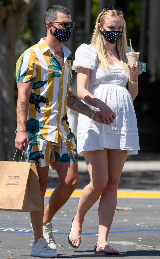 Sophie Turner súper embarazada y combinada con Joe Jonas