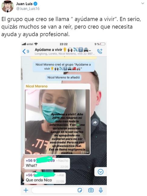 Supuesto grupo de Whatsapp habría creado Nicole Moreno para pedir ayuda