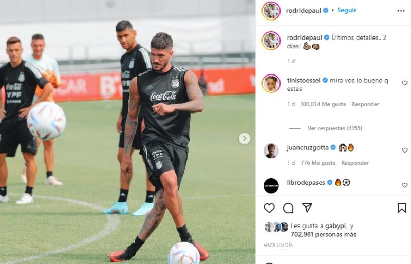 Esta vez, fue Stoessel quien halagó a su pololo en las redes sociales. De Paul está en Londres con la Selección de fútbol de su país para disputar un partido con Italia en la previa del Mundial de Qatar. Tini, en Argentina. A la distancia, se hizo notar. Ante un posteo del jugador, ella comentó, sin rodeos: “Mira vos lo bueno que estas”. Atrás quedó el cuidado para no mostrarse juntos ni las exigencias de las cantantes a la hora de dar entrevistas: por adelantado, su equipo prohíbe que le pregunten a ella por él.