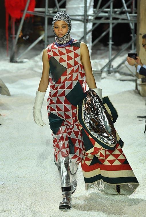 La ropa era modesta, con faldas largas y ropa interior amplia. Sombreros inspirados en hiyabs protegían el cabello y el cuello de las modelos, a veces cubiertas en túnicas.