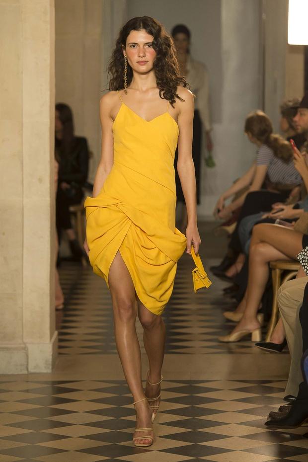 El joven diseñador Simon Porte Jacquemus presentó su colección "La bomba", en la que la mujer se muestra sensual con espaldas al descubierto, finos tirantes y escotes generosos, dando a la vez la impresión de haberse vestido a toda prisa.