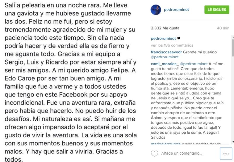 A varias horas de su paso por la Quinta Vergara, el ex integrante del programa “El club de la comedia” se confesó en su cuenta de Instagram, donde entregó la postura más honesta posible de su experiencia.