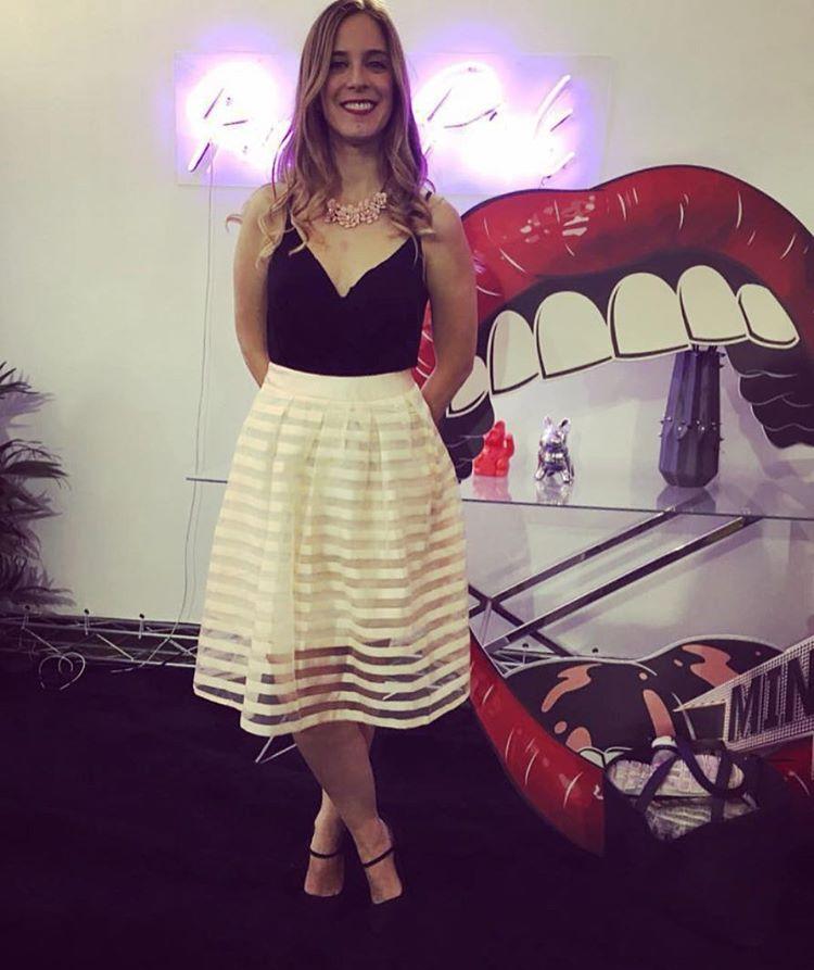 Con un mini vestido negro que nunca falla y súper producida.