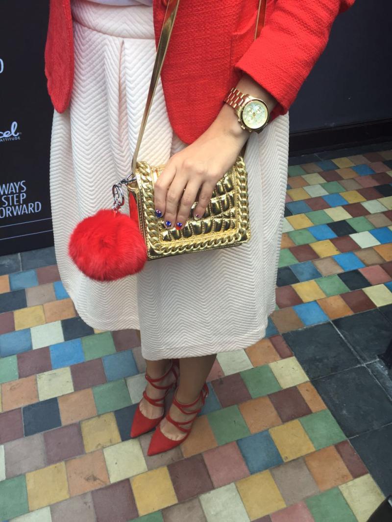 Eugenia Lemos encendió evento con colorido y combinado look