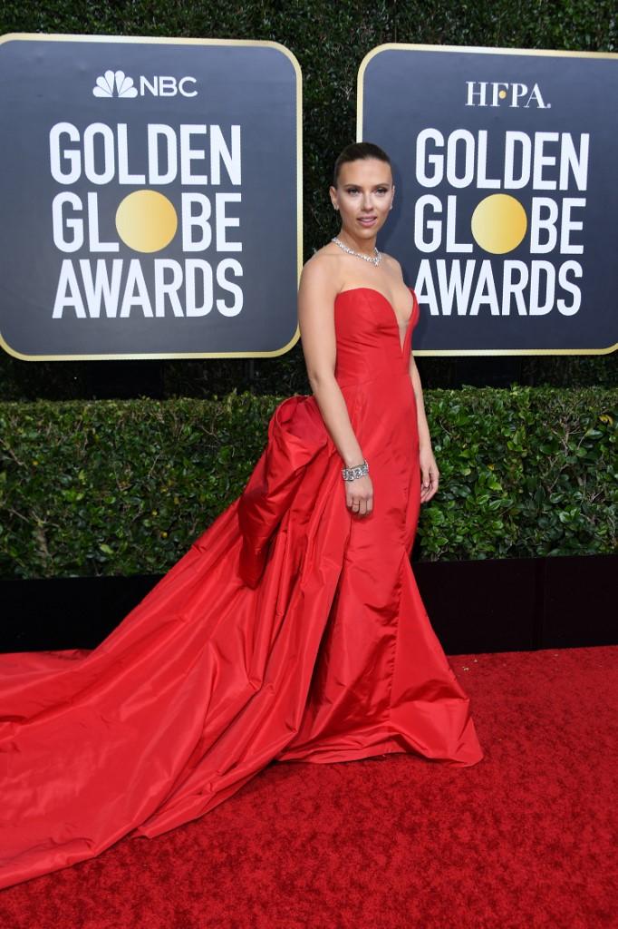 Scarlett Johansson luce pronunciado escote en la alfombra roja de los Globos de Oro