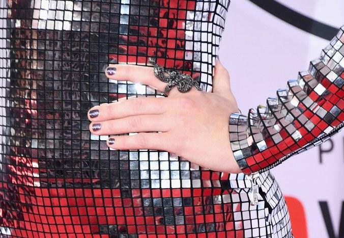 El pelo lo llevó arriba, y terminó el look con argollas gigantes, dándole una vibra Studio 54 al look, bastante alejado de sus raíces country. También decidió llevar un anillo en forma de serpiente, para hacer alusión a las críticas que se le han hecho y cómo ella se las ha tomado.