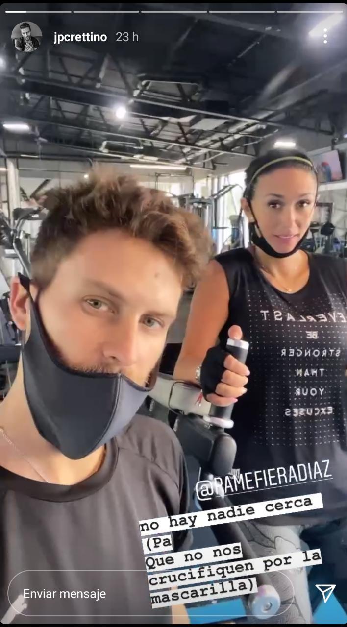 "Dicen que pareja que hace deporte unida...", bromeó Jean Philippe Cretton en una de sus stories, que terminó con "no existe un dicho que diga eso", y mostrando cómo Pamela Díaz hacía algunos ejercicios.