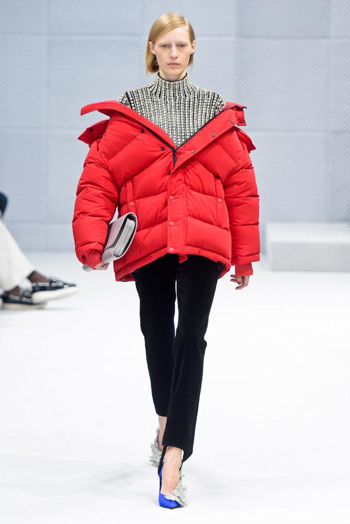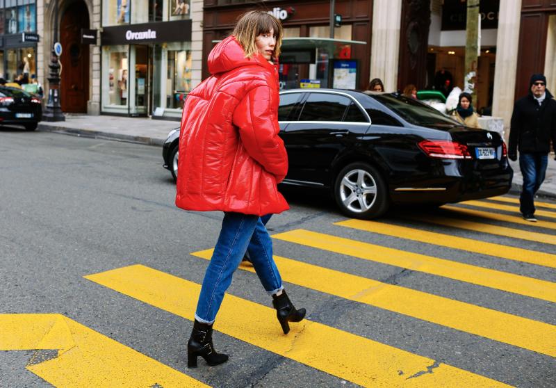 Balenciaga se lanzó a la piscina con esta prenda que otorga mejor abrigo que cualquier otra y así, en rojo, las puffer jackets se robaron la atención en el street style.