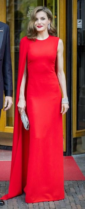 6- Letizia de España en un espectacular vestido rojo con capa de Stella McCartney