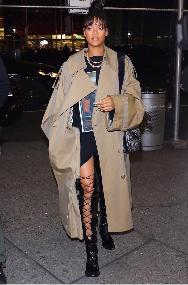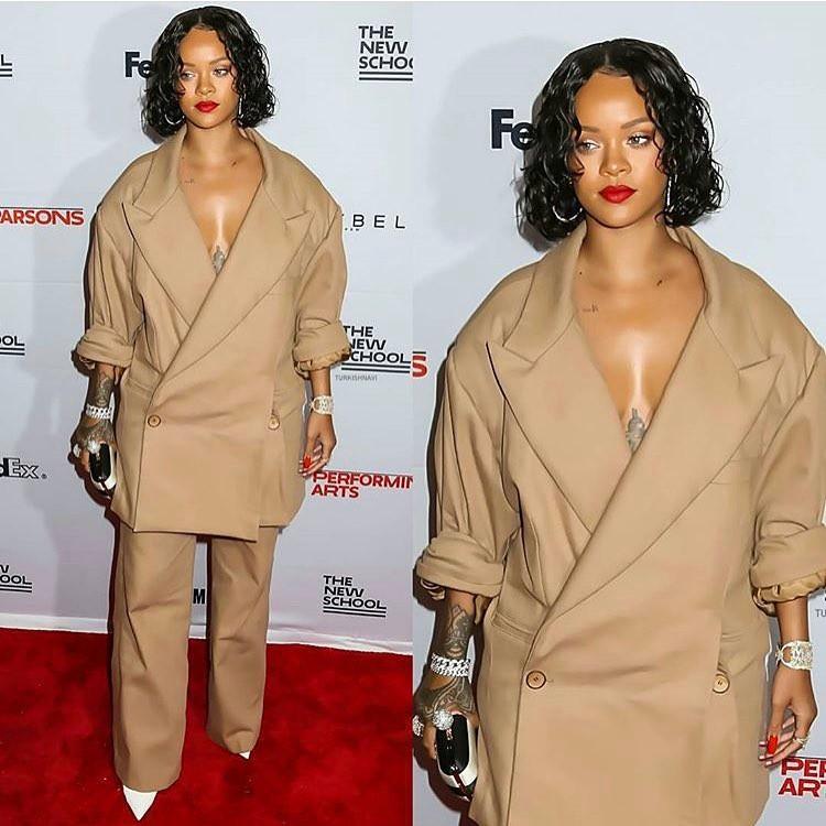 De un tiempo a esta parte la estrella nacida en Barbados ha mostrado una fijación con lo extra large. Prendas ultra grandes luce la celebridad... inolvidable es ese cinturón de viejo pascuero enorme que ató a su cintura para Navidad...