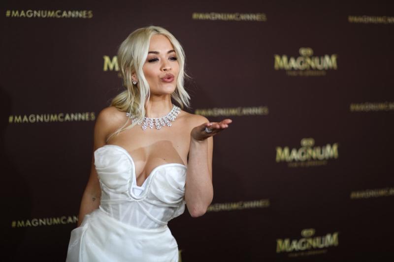 Reluciente y platinada llegó Rita Ora al evento de Magnum que se desarrolló en el marco del importante festival de cine.