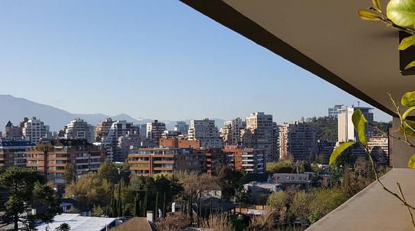 Desde el aeropuerto Arturo Merino Benítez la actriz se subió a una van para dirigirse al hotel donde se hospeda, desde donde compartió algunas fotos de la vista de su habitación y de su desayuno.
