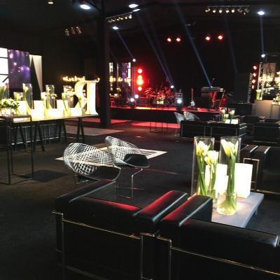 El Fashion party se llevó a cabo en el último piso de Ripley Parque Arauco, con una capacidad para 400 personas en un espacio totalmente negro y con alfombras aterciopeladas con un gran escenario en un extremo de la sala y decorado con candelabros de lágrimas de cristal.