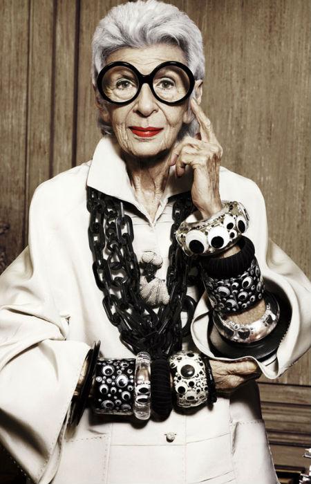 A sus 94 años, Iris Apfel es un ícono de moda de la gran manzana, conocida como la reina de los accesorios. La diseñadora de interiores no tuvo problemas en coquetear con la moda ya que su pasión y sus conocimientos se manifestaron a través del textil. Trabajó para grandes firmas y fue decoradora de 9 presidentes de los Estados Unidos.