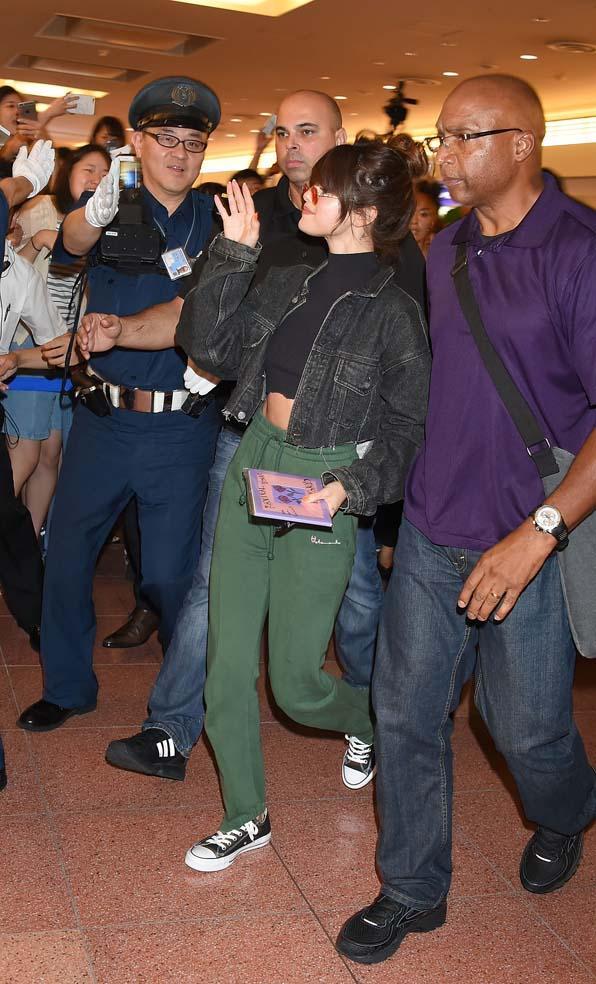 Gomez acompañó su lujosa prenda de un crop negro rasgado y una chaqueta de mezclilla ancha. Sus pies muy bien puestos sobre el suelo en unas zapatillas Converse ¡Puro estilo!