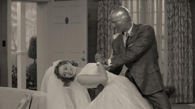 En un guiño a las sitcoms clásicas de la TV estadounidense, los realizadores de WandaVision decidieron grabar el primer episodio de la serie frente a una audiencia en vivo. Así, obtuvieron risas espontáneas por parte del público, un elemento clásico del género, y motivaron a los actores de una forma única: “Es increíble lo que sucede cuando pones actores frente a un público en vivo, cómo el material se exalta con la adrenalina, el entusiasmo, la comunicación que se produce entre los actores y el público. Esto eleva el material, y se convierte en algo más parecido al teatro.”, comenta Matt Shakman, quien dirigió todos los episodios, y concluye: “Esa fue una parte muy importante de lo que captamos en el primer episodio, esa chispa, esa especie de relámpago en una botella”.