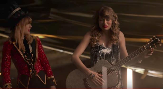 Representándose a sí misma en distintas etapas, la nueva Taylor se para sobre todas ellas. Más tarde incluso, se burla imitando diversos episodios de su vida.