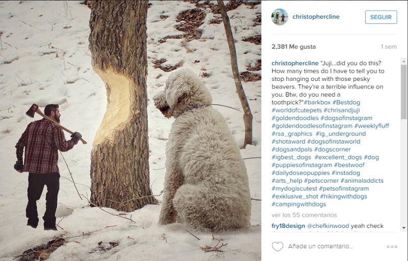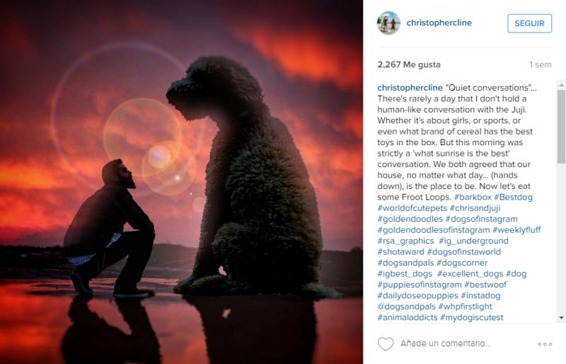 El fotógrafo Christopher Cline se ha hecho famoso en Instagram photoshopeando a su perro Juji para convertirlo en un canino gigante. Sus fotos ya tienen más de 30 mil seguidores.