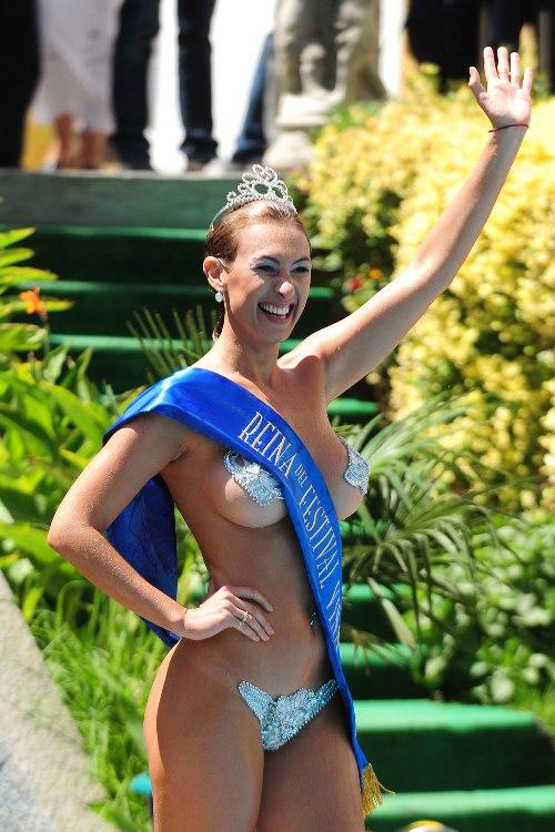 Una de las reinas que más llamó la atención fue Sigrid Alegría, en 2014, quien marcó un antes y un después en este evento al presentarse al 'piscinazo' sin ropa, sólo con su cuerpo pintado.