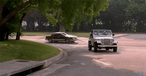 Durante el examen de conducción de Cher, se tropieza con otro vehículo y destruye su espejo lateral, pero en la siguiente escena la ventana es mágicamente reemplazada.