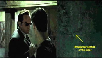Puedes ver una sección sobrepuesta del pilar durante una escena de lucha en “The Matrix”