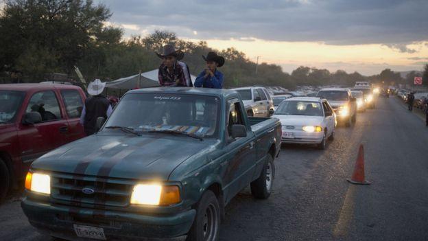 "¡Que viva Rubí!", se escuchaba desde dentro de las camionetas repletas de jóvenes vestidos con botas y sombreros vaqueros, que coqueteaban con las adolescentes de entallados vestidos.