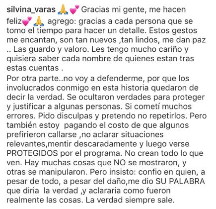 Silvina Varas sorprendió a todos con un mensaje en su cuenta de Instagram ¿Se fue del encierro de Mega? Se preguntan los seguidores del espacio. Si bien esta información no es confirmada, su descargo amplio y sin anestesia está en boca de todos.