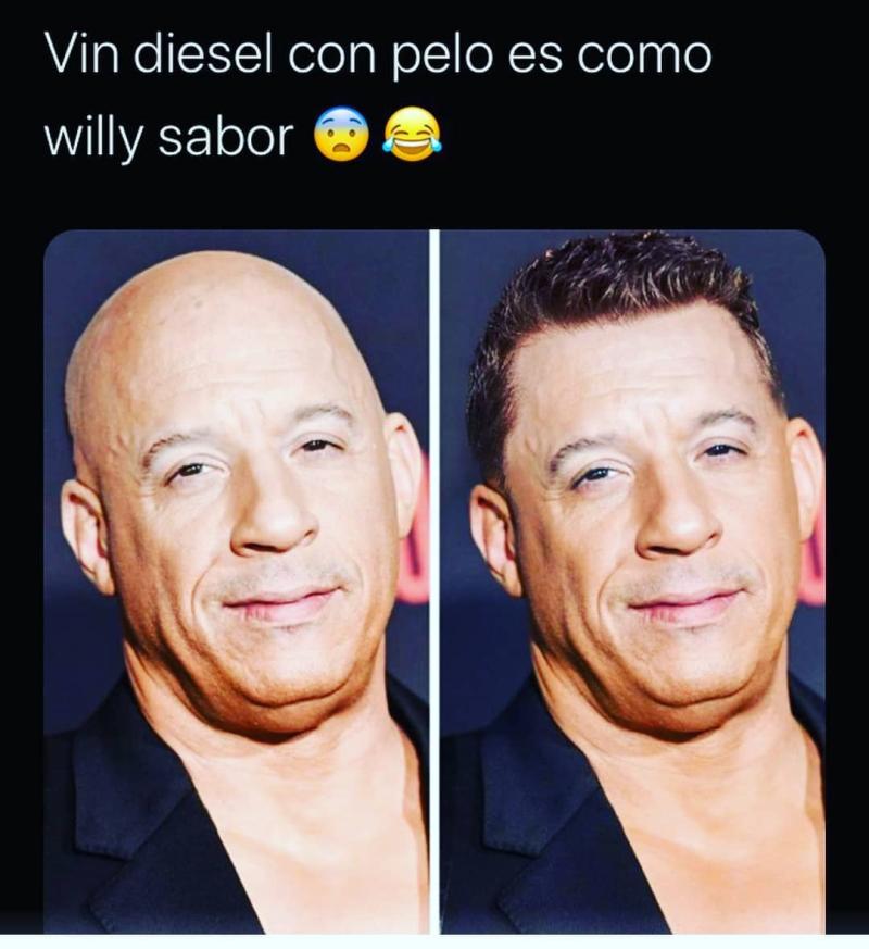 Sí, como lees. Resulta que a algún ingenioso usuario se le ocurrió ponerle pelo a la estrella hollywoodense y obtuvo un hilarante resultado ¡Vin Diesel igual a Willy Sabor!